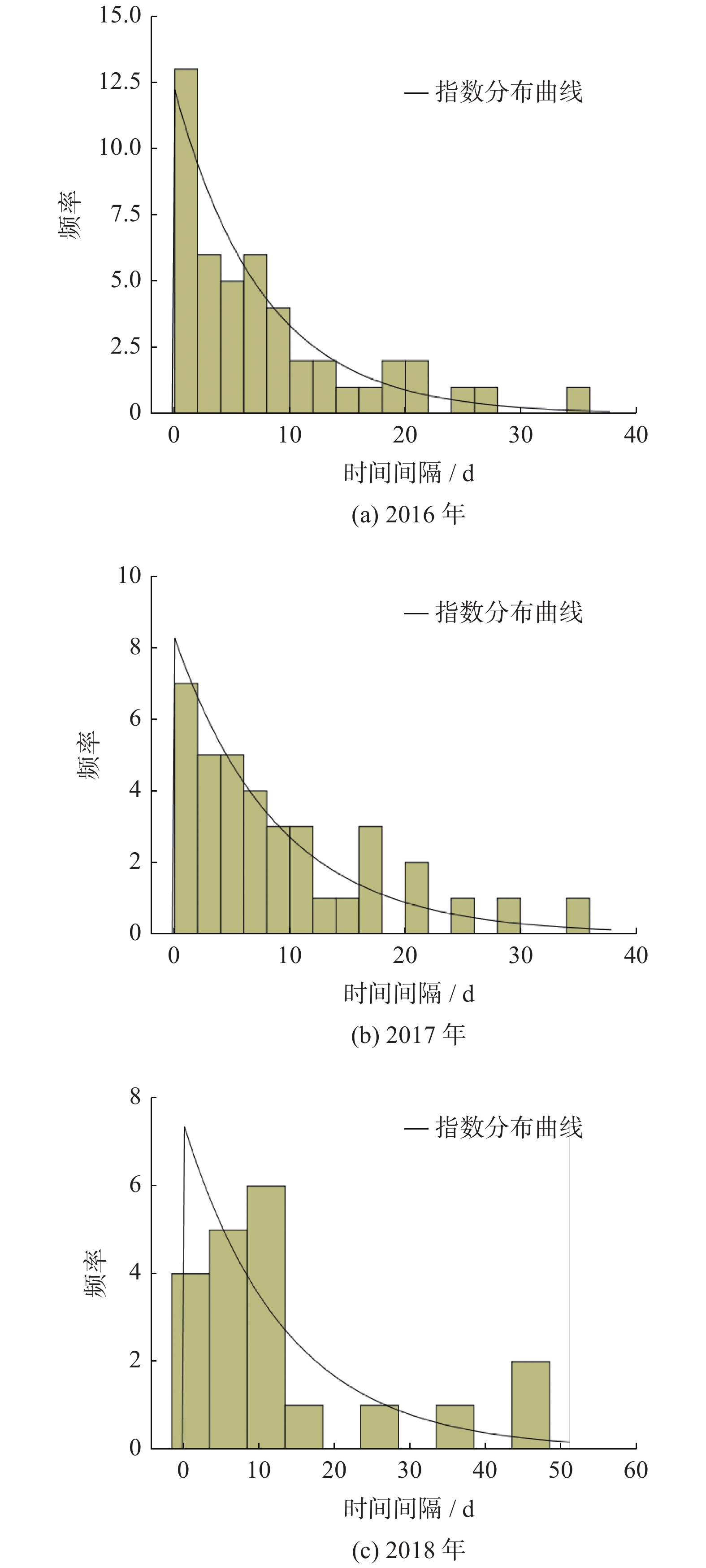 年份 样本数量 指数参数 p值 均值 $\lambda $ 2016 47 7.68 0.131 0.212 2017 37 8.95 0.112 0.802 2018 20 13.40 0.075 0.746 表 2 车门平均故障间隔时间