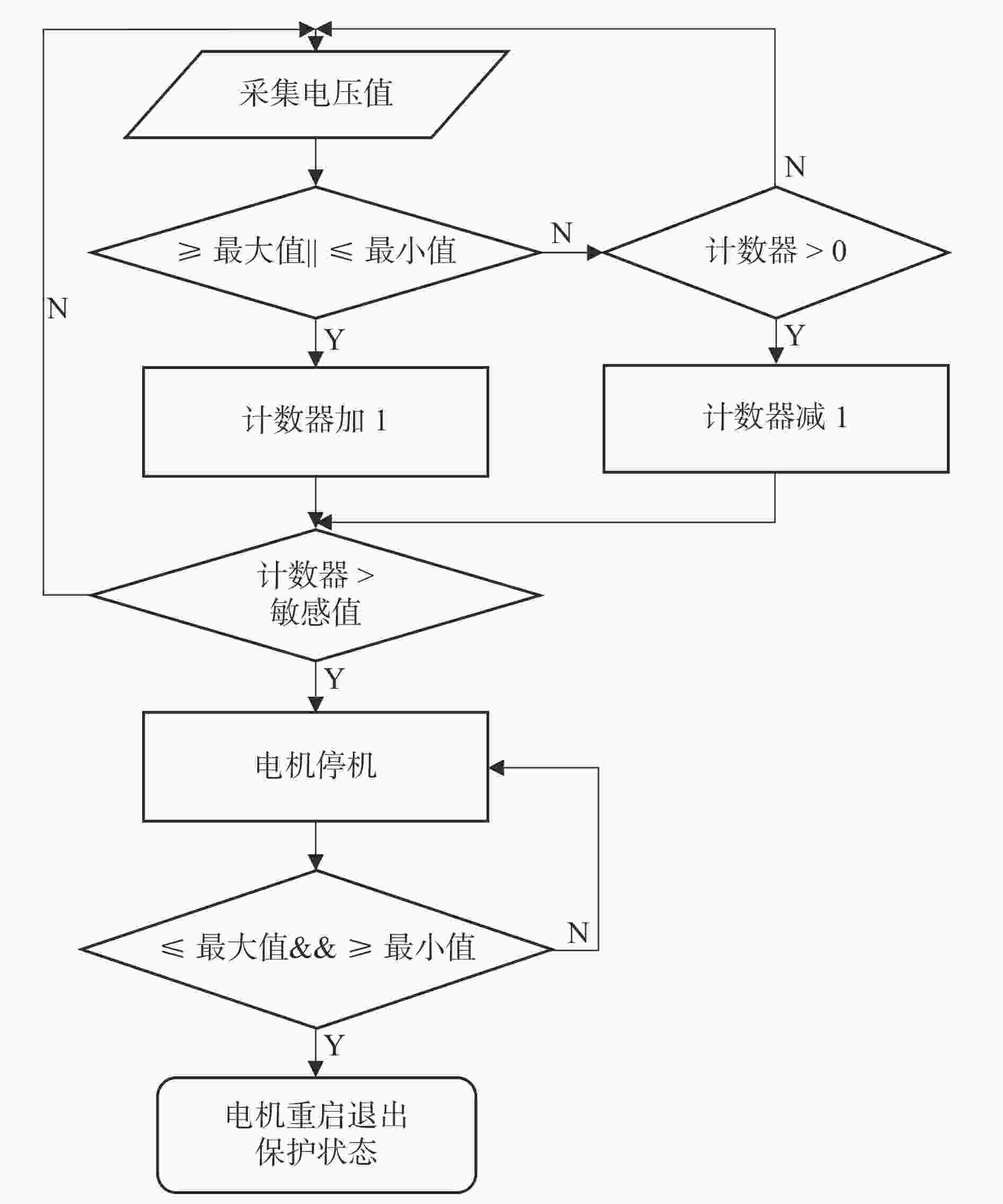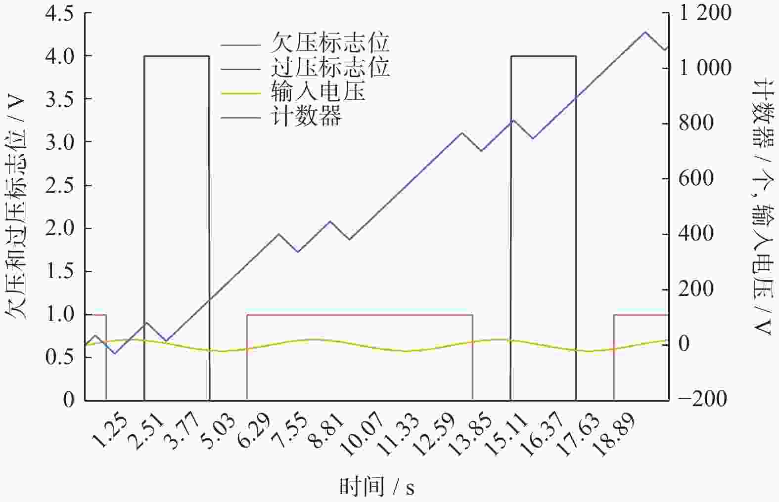 序号 名称 阈值1/V 阈值2/V 敏感值/ms 保护策略 1 欠压 7.5 8.0 450 停机 2 欠压 7.9 8.6 280 重启 3 过压 16.5 17.1 550 停机 4 过压 15.5 16.0 500 重启 5 最小报错电压 6.0 7.0 — 停机 6 最大报错电压 18.0 19.0 — 停机 -