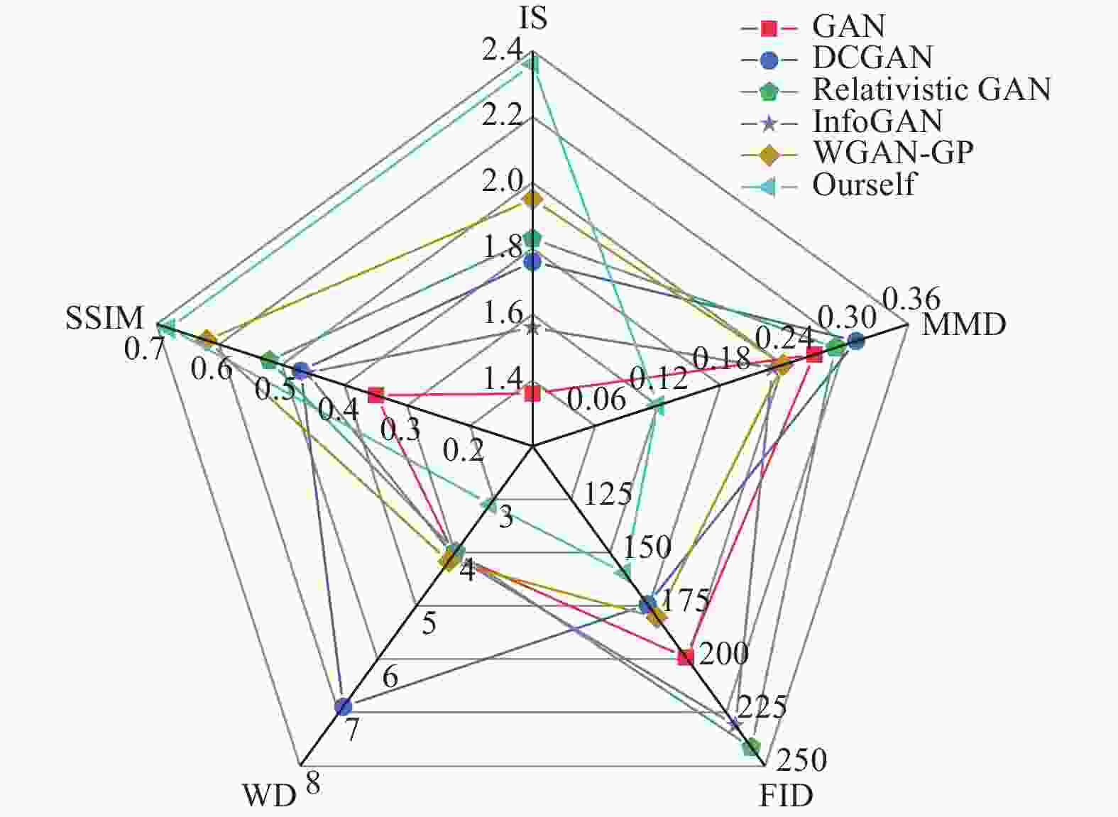 Figure  9.  Performance evaluation radar charts of generated samples by different algorithms