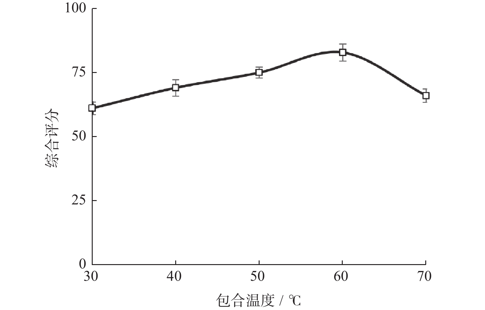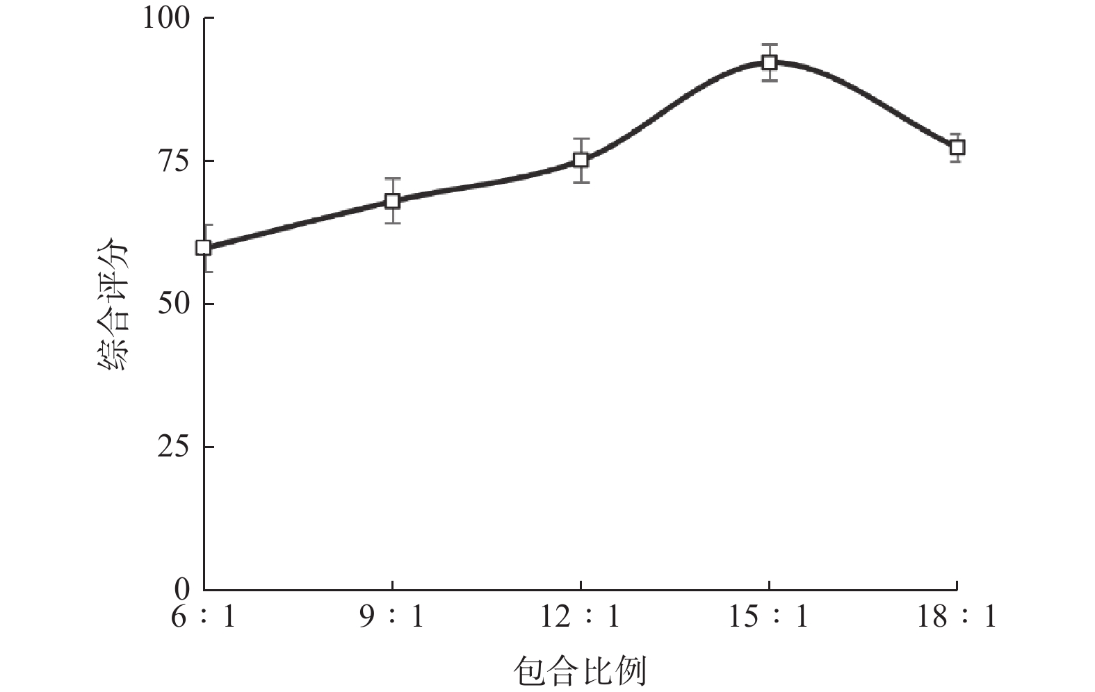 Abstract: To prepare the hydroxypropyl-β-cyclodextrin inclusion complex from clove essential oil using saturated aqueous solution method. Based on the single factor experiments, the ratio of hydroxypropyl-β-cyclodextrin to volatile oil, encapsulation temperature, and encapsulation time were used as influencing factors, and the comprehensive score was used as the response value. The encapsulation process was optimized by Box-Behnken response surface methodology. The optimal condition was obtained as the ratio of hydroxypropyl-β-cyclodextrin to volatile oil was 14.5∶1, with an inclusion temperature of 59 ℃ and an inclusion time of 2.4 h. The comprehensive score of the three validation experiments is 92.21%±0.50%, which is close to the predicted value, indicating that the prediction of the model is accurate and reliable. The inclusion complex was observed under microscope, analyzed by thin layer chromatography (TLC), and identified by infrared spectroscopy, proving the formation of a stable inclusion complex. These results can provide data support for further development and utilization of clove volatile oil. -