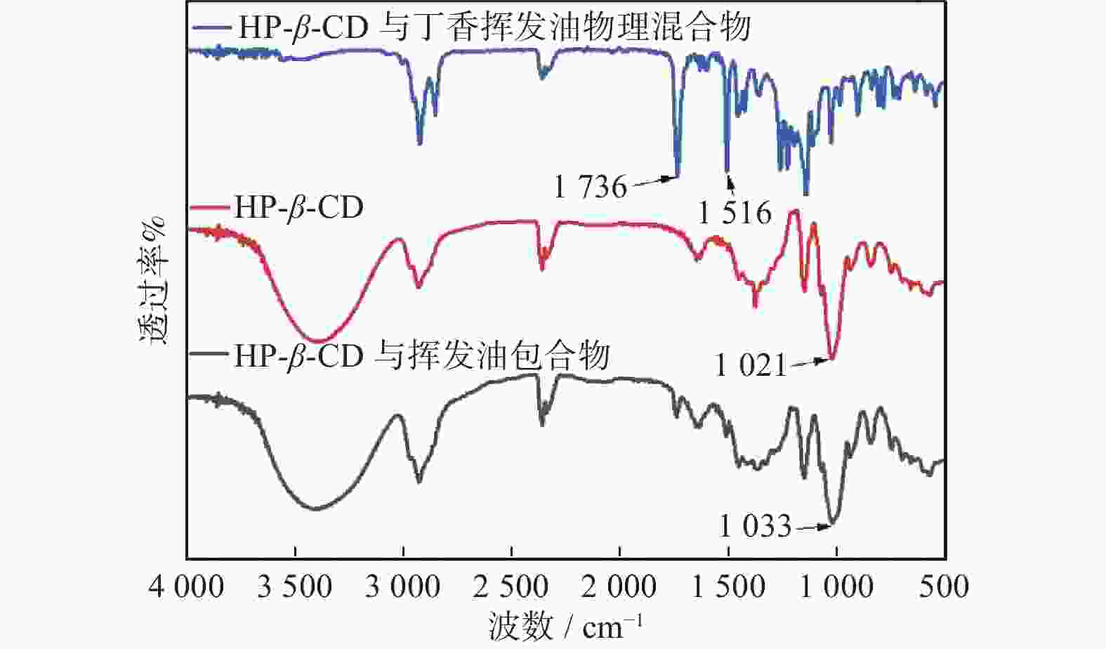 [1] XUE Q, XIANG Z D, WANG S G, et al. Recent advances in nutritional composition, phytochemistry, bioactive, and potential applications of Syzygium aromaticum L. (Myrtaceae)[J] . Frontiers in Nutrition, 2022, 9: 1002147. doi: 10.3389/fnut.2022.1002147 [2] ZHANG P, ZHANG E L, XIAO M, et al. Enhanced chemical and biological activities of a newly biosynthesized eugenol glycoconjugate, eugenol α-D-glucopyranoside[J] . Applied Microbiology and Biotechnology, 2013, 97(3): 1043 − 1050. doi: 10.1007/s00253-012-4351-2 [3] HAN X S, PARKER T L. Anti-inflammatory activity of clove (Eugenia caryophyllata) essential oil in human dermal fibroblasts[J] . Pharmaceutical Biology, 2017, 55(1): 1619 − 1622. doi: 10.1080/13880209.2017.1314513 [4] ZHANG L F, GU B, WANG Y. Clove essential oil confers antioxidant activity and lifespan extension in C. elegans via the DAF-16/FOXO transcription factor[J] . Comparative Biochemistry and Physiology Part C: Toxicology & Pharmacology, 2021, 242: 108938. [5] SINGH J, BAGHOTIA A, GOEL S P. Eugenia caryophyllata thunberg (Family Myrtaceae): a review[J] . International Journal of Research in Pharmaceutical and Biomedical Sciences, 2012, 3(4): 1469 − 1475. [6] LI Z H, LI K, TENG M L, et al. Functionality-related characteristics of hydroxypropyl-β-cyclodextrin for the complexation[J] . Journal of Molecular Liquids, 2022, 365: 120105. doi: 10.1016/j.molliq.2022.120105 [7] GHARIB R, GREIGE-GERGES H, FOURMENTIN S, et al. Hydroxypropyl-β-cyclodextrin as a membrane protectant during freeze-drying of hydrogenated and non-hydrogenated liposomes and molecule-in-cyclodextrin-in- liposomes: application to trans-anethole[J] . Food Chemistry, 2018, 267: 67 − 74. doi: 10.1016/j.foodchem.2017.10.144 [8] 方浩标, 李春海, 张钟, 等. 响应面试验优化饱和水溶液法制备紫苏精油β-环糊精包合物工艺及其理化性质[J] . 绿色包装, 2019(1): 47 − 54. [9] 韩林, 张艳侠. 丁香挥发油β-环糊精包合物的制备研究[J] . 西北药学杂志, 2011, 26(6): 447 − 449. doi: 10.3969/j.issn.1004-2407.2011.06.024 [10] 李双双, 李希, 邓谦, 等. 椒香温中止痛方挥发油β-环糊精包合工艺优化及其包合物表征[J] . 中成药, 2020, 42(12): 3128 − 3134. doi: 10.3969/j.issn.1001-1528.2020.12.003 [11] 王琪, 胡佳亮, 张金良, 等. 薄荷-荆芥穗挥发油羟丙基-β-环糊精包合物的制备[J] . 中成药, 2020, 42(12): 3122 − 3128. doi: 10.3969/j.issn.1001-1528.2020.12.002 [12] 代良敏, 代良萍, 陈永钧, 等. 基于Box-Behnken实验优化地榆皂苷元固体脂质纳米粒的制备[J] . 时珍国医国药, 2023, 34(9): 2117 − 2120. doi: 10.3969/j.issn.1008-0805.2023.09.17 [13] ABD-EL-AZIZ N M, HIFNAWY M S, EL-ASHMAWY A A, et al. Application of Box-Behnken design for optimization of phenolics extraction from Leontodon hispidulus in relation to its antioxidant, anti-inflammatory and cytotoxic activities[J] . Scientific Reports, 2022, 12(1): 8829. doi: 10.1038/s41598-022-12642-2 [14] KUSHWAHA P, SHUKLA B, DWIVEDI J, et al. Validated high-performance thin-layer chromatographic analysis of curcumin in the methanolic fraction of Curcuma longa L. rhizomes[J] . Future Journal of Pharmaceutical Sciences, 2021, 7(1): 178. doi: 10.1186/s43094-021-00330-3 [15] TORIMOTO T, YAMAGUCHI N, MAEDA Y, et al. Development of plasmonic thin-layer chromatography for size-selective and optical-property-dependent separation of quantum dots[J] . NPG Asia Materials, 2022, 14(1): 64. doi: 10.1038/s41427-022-00414-3 [16] YUAN C, JIN Z Y, XU X M. Inclusion complex of astaxanthin with hydroxypropyl-β-cyclodextrin: UV, FTIR, 1H NMR and molecular modeling studies[J] . Carbohydrate Polymers, 2012, 89(2): 492 − 496. doi: 10.1016/j.carbpol.2012.03.033 [17] YUAN C, LIU B G, LIU H. Characterization of hydroxypropyl-β-cyclodextrins with different substitution patterns via FTIR, GC-MS, and TG-DTA[J] . Carbohydrate Polymers, 2015, 118: 36 − 40. doi: 10.1016/j.carbpol.2014.10.070 [18] HAO X C, SUN X D, ZHU H Z, et al. Hydroxypropyl-β-cyclodextrin-complexed resveratrol enhanced antitumor activity in a cervical cancer model: in vivo analysis[J] . Frontiers in Pharmacology, 2021, 12: 573909. doi: 10.3389/fphar.2021.573909 -
