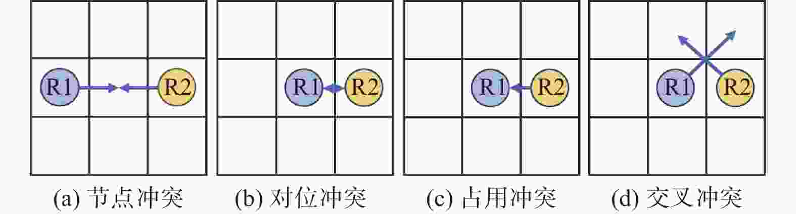 冲突类型 冲突消解策略 节点冲突 等待策略/重规划策略 交叉冲突 等待策略/重规划策略 对位冲突 退回策略/重规划策略 占用冲突 退回策略/重规划策略 表 2 3种算法性能指标对比