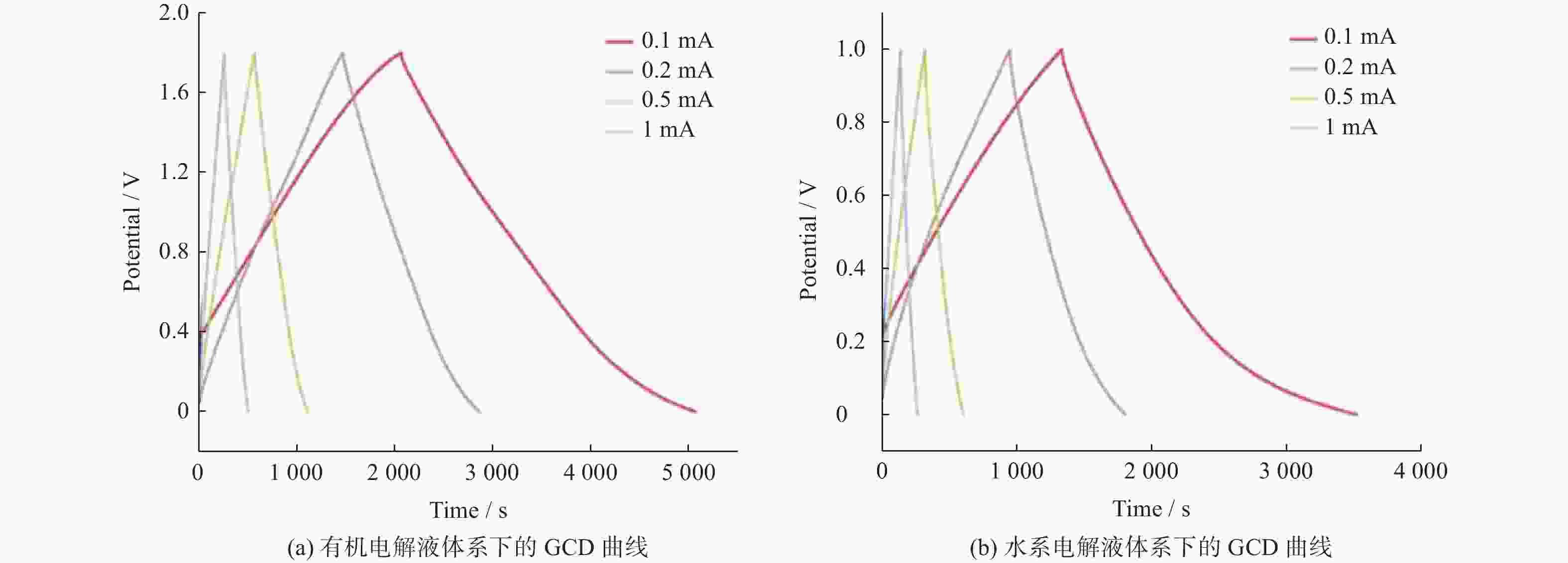摘要: 为应对传统能源的不可持续及相关的环境问题,新能源储能器件日益得到重视。超级电容器因功率密度高、使用寿命长和绿色环保等特点受到广泛关注。以活性炭为阴极,分别在有机和水系电解液中组装CR2032型纽扣电池。在扫描速率为0.1 mV/s时,两种电解液对应的比电容分别为143.44和156.58 F/g;在电流密度为0.1 A/g时,两种电解液对应的比电容分别为79.54和95.92 F/g。有机体系中最大电位窗口达1.8 V;600次循环后,其比电容和库伦循环效率保持率均优于水系,表现出更好的稳定性,但水系的阻抗性能更加优异。Abstract: The unsustainability of traditional energy sources and environmental issues have led to an emphasis on new energy storage devices. Among them, supercapacitors have received widespread attention due to their high power density, long cycle life, and environmental friendliness. CR2032 coin cells were assembled using activated carbon as the cathode in both organic and aqueous electrolytes. At a scan rate of 0.1 mV/s, the specific capacitances of the organic and aqueous electrolytes were 143.44 and 156.58 F/g, respectively; at a current density of 0.1 A/g, the corresponding specific capacitances were 79.54 and 95.92 F/g. The organic system exhibited a maximum potential window of 1.8 V. After 600 cycles, the organic system demonstrated better stability in terms of specific capacitance and Coulomb cycle efficiency retention compared to the aqueous system. In contrast, the impedance behavior of the aqueous system was found to be superior.