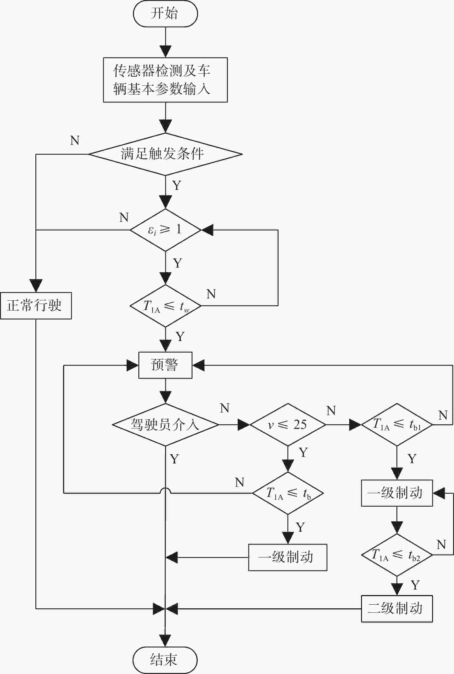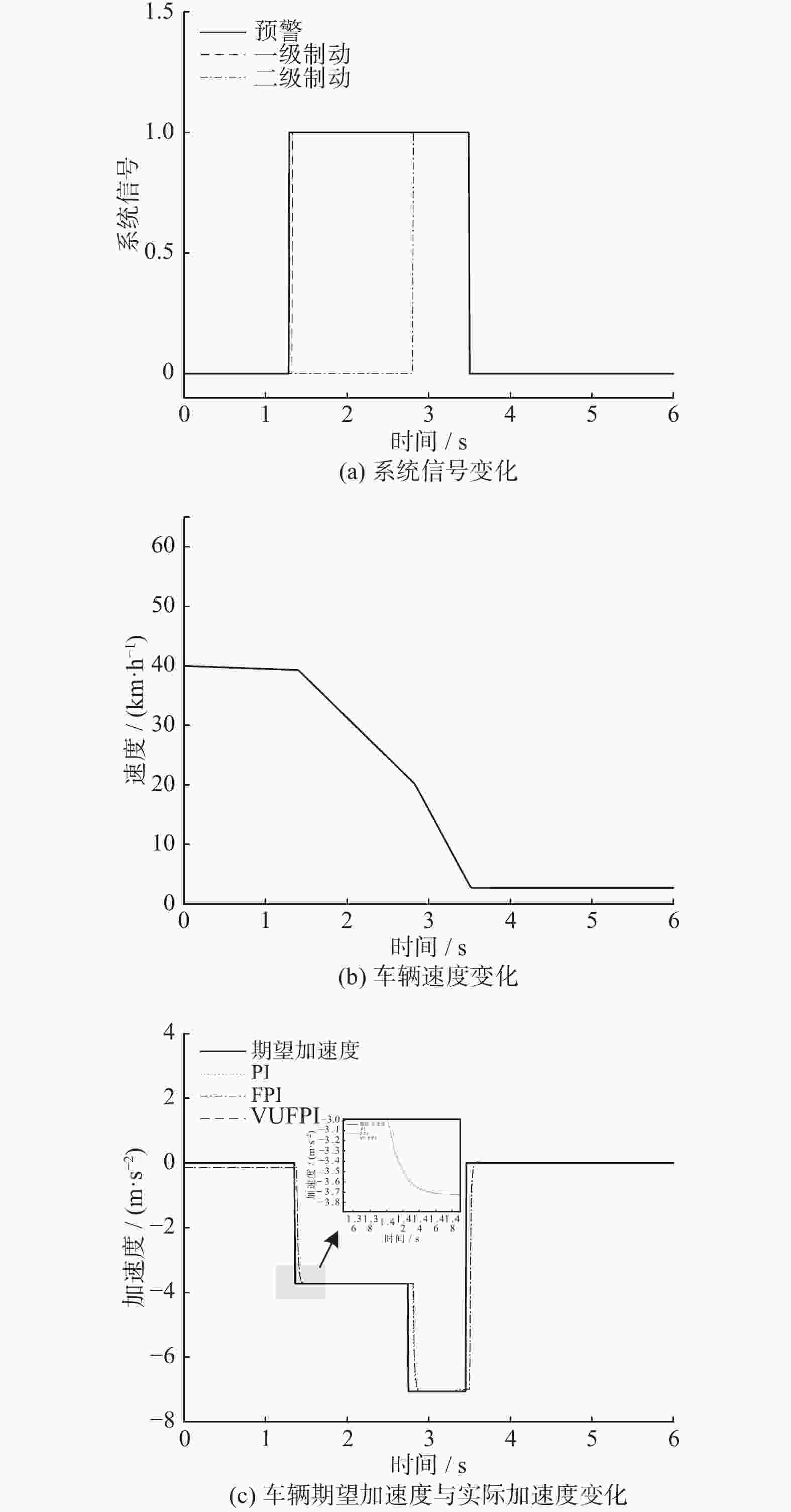 摘要: 针对车辆在直行过程中与穿行目标的运动关系,提出一种自动紧急制动(AEB)控制策略。将目标相对车辆的运动分解为横向和纵向分量,基于碰撞时间(TTC)算法定义危险系数以确立预警判断条件,并设计动态触发宽度和动态TTC阈值,当系统发出预警且驾驶员未介入时,采用分速分级制动策略。基于变论域模糊PI算法构建下层控制器,实现对本车期望加速度的精准跟随。同时,利用PreScan建立车辆逆纵向动力学模型,将其转化为实际操作。通过PreScan与Matlab对该策略进行仿真验证分析,结果显示,在基于C-NCAP的测试场景下,该策略能有效避免碰撞。